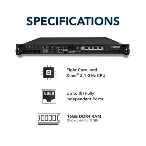 Memoria: 16 GB DDR4 (espandibile fino a 32 GB ECC). La memoria DDR4 consente maggiore stabilità e velocità di trasferimento più elevate per applicazioni ad alta intensità di memoria (ad es. IDS/IPS). La flessibilità hardware consente di aggiornare la memoria in qualsiasi momento fino a 32 GB, rendendo questo dispositivo pronto per il futuro.