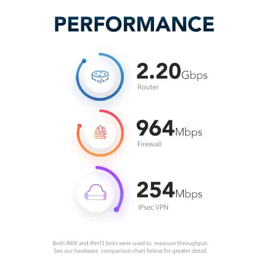 CPU: La CPU Dual Core ARM v8 Cortex-A53 a 1,2 GHz offre un instradamento fino a 2,20 Gbps per traffico iPerf3 standard e oltre 964 Mbps di throughput del firewall.