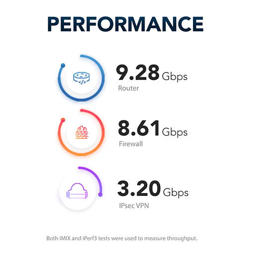 CPU: Intel Atom C1110 con AVX2, 4-core @ 2,1 GHz. Garantisce fino a 3 volte le prestazioni sui benchmark per routing, firewall e VPN IPsec rispetto al Netgate 4100. Porte di rete: Quattro porte LAN RJ45 da 2,5 Gbps indipendenti e configurabili per massima flessibilità. Configurabile per WAN singola o doppia, oppure failover ad alta disponibilità. Archiviazione: SSD NVMe M.2 da 128 GB Memoria: 4 GB di RAM LPDDR5. La memoria DDR5 consente maggiore stabilità e velocità di trasferimento più elevate per applicazioni ad alta intensità di memoria (ad es. IDS/IPS). Raffreddamento: Il sistema di raffreddamento passivo e il basso consumo energetico del Netgate 4200 garantiscono una gestione termica efficiente e un funzionamento silenzioso, tipici dei dispositivi più piccoli, nonostante le prestazioni significativamente superiori.