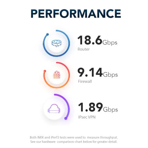 I test di prestazione del Netgate 7100 sono stati condotti con il software pfSense Plus, versione 22.01.