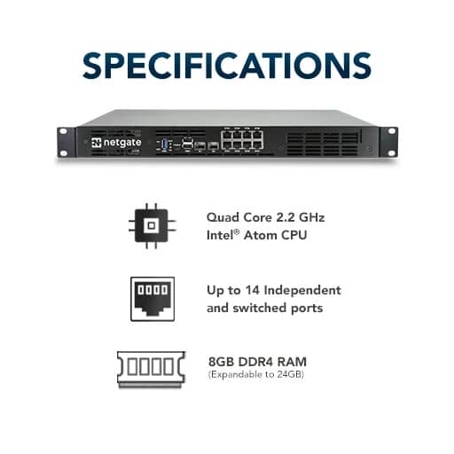 Il gateway di sicurezza Netgate® 7100 1U con software pfSense® Plus è ideale per uffici remoti, PMI e reti aziendali che richiedono prestazioni di livello enterprise in un formato rack. È dotato di una CPU Intel® Atom quad-core da 2,2 GHz con AES-NI e QAT (QuickAssist Technology) integrati, fino a 24 GB di RAM DDR4, (2) porte da 10 GbE, (8) porte switchate da 1 GbE e di un modulo di espansione Intel GbE a 4 porte. L’XG-7100 1U consente prestazioni di routing fino a 18,5 Gbps e un throughput firewall fino a 9,85 Gbps.
