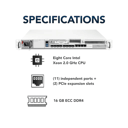 Elevate your network infrastructure with the Netgate® 8300 Secure Router featuring TNSR® software. Netgate’s first 100Gbps+ Secure Router is a powerhouse designed for service providers, virtual/remote offices, and businesses embracing edge-to-cloud applications, this high-performance, secure router redefines networking with unmatched flexibility, expandability, and scalability. Unleash unparalleled performance with its 2.0 GHz, 8-core, 16-thread Intel® Xeon® D-1733NT processor equipped with the Intel AVX-512 instruction set, delivering exceptional speed and security. AVX-512 exponentially boosts routing, VPN, and ACL filtering performance by processing data more efficiently, significantly enhancing network performance with faster data processing, reduced latency, and improved responsiveness. Experience next-level connectivity with quad 10G SFP+ ports, quad 1G SFP ports, and triple 2.5G RJ-45 ports, boasting a remarkable 500% increase in throughput and a 175% boost in port density over the 1541. As Netgate's most expandable chassis, it can support 25G and 100G ports via PCIe cards. The Netgate 8300 helps future-proof your network infrastructure and scale as your business grows. Take your network capabilities to the next level and unleash the full potential of your business with Netgate's most robust secure router.