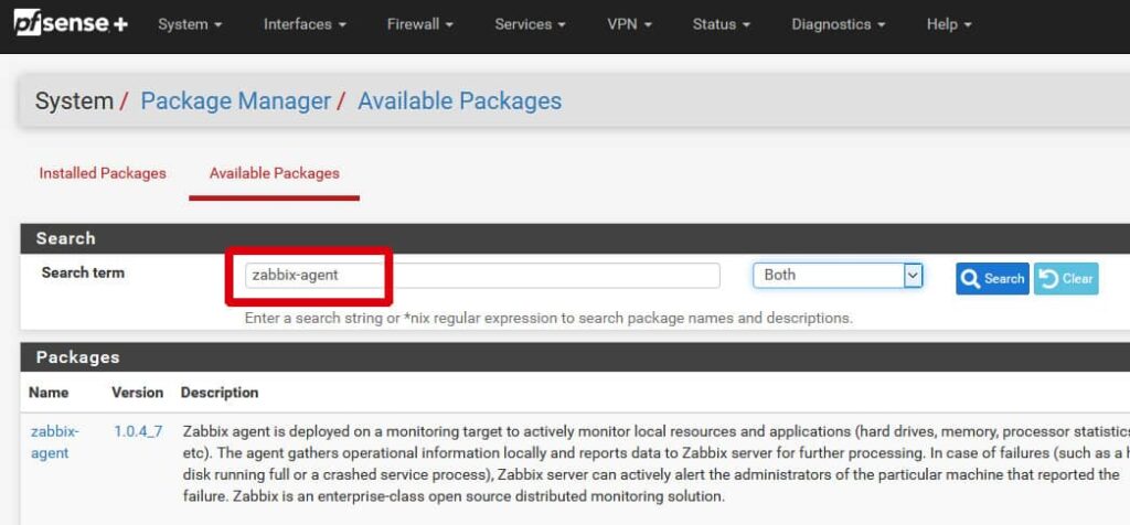 Our Monitoring Solution leverages the robust capabilities of the Zabbix agent, which comes as an installable package on both pfSense Community Edition and pfSense Plus.